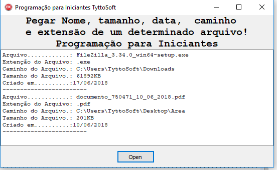 Pegar nome, extensão, data e caminho de um determinado arquivo. Clique Aqui! Programação para Iniciantes - TyttoSoft