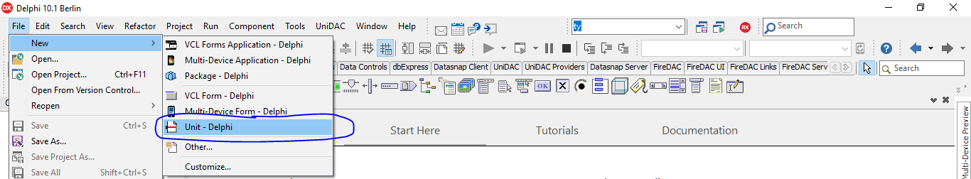 Vamos criar um nova Unit: File - New - Unit-Delphi.