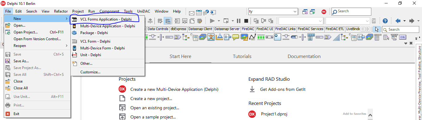 Vamos passar todos os componentes adicionados no form, para ShowMessage, vamos criar um novo Projeto. 1 - Vamos criar um novo projeto: File - New - VCL Forms Application - Delphi.